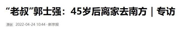 参考资料:新京报《“老叔”郭士强:45岁后离家去南方|专访》
