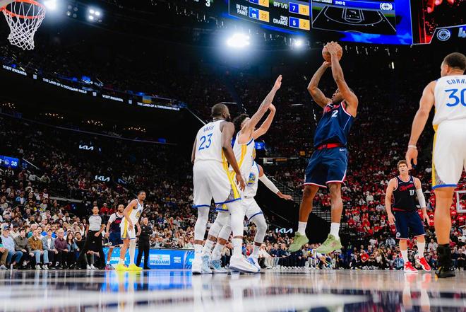 看起来,比赛从首节开始就奠定了基调。再加上库里比赛期间因伤返回更衣室,快船队主场的氛围达到了巅峰。勇士队球迷懵了,落后加上核心退场,这比赛看起来根本没得打。但波尔津吉斯率队顶住了压力,才导致球队没有被快船队一波流带走。还有小佩顿,各种拼抢积极性拉满,力求守卫每一波球权。从场面来看,快船队确实是压着勇士队来打,有核心伦纳德坐镇,还有三分神准的马瑟林,以及打出加盟后最抢眼表现的加兰。所以快船队一直将分差维持在8分左右,一直掌握着场上节奏。库里上下场时,勇士完全就是两支球队。所以库里往返更衣室,只为了尽可能的提升士气。