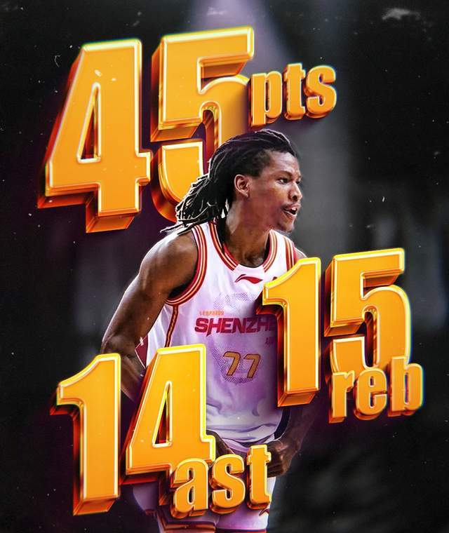 他狂砍45分、15篮板、14助攻的惊天三双,其中15个篮板打破CBA历史上小个后卫单场篮板纪录(原纪录为于德豪的14个),成为本赛季最具颠覆性的数据奇迹。作为身高不足1米90的后卫,他凭借极强的预判、卡位意识与拼抢欲望,硬生生从内线群中抢下15个篮板,远超多数2米以上中锋的效率。