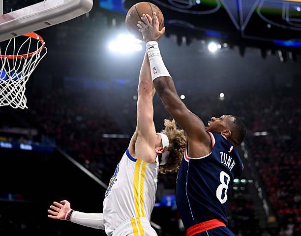 本场比赛中,快船虽然输掉了比赛,但是球队的先发后场大闸克里斯-邓恩(Kris Dunn)的表现已经相当不错了。邓恩全场出场32分24秒,投篮5中3,三分线外2中1,得到了7分3篮板10助攻3抢断的数据,还有1次失误和4次犯规,正负值为-9。邓恩在进攻端没有进行太多的出手,但是其实他的进攻效率还行,也没有浪费什么太多的机会,而且他在传球和组织方面的表现算得上是可圈可点。邓恩在防守端也是足够卖力了,也算是起到了一定的效果了,但是他的后场搭档达里厄斯-加兰(Darius Garland)的防守能力惨不忍睹。邓恩又要限制斯蒂芬-库里(Stephen Curry),又要经常帮助加兰,确实是有些力不从心。邓恩确实是足够努力了,但是他毕竟不是球队的核心人物,确实是很难起到更大的作用了。