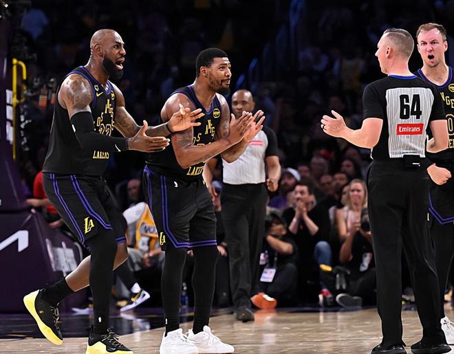 反观湖人队,没有东契奇和里夫斯,却在老詹的带领下打出了风调雨顺的进攻!此役,老詹出战39分钟,贡献28分+8篮板+7助攻+1抢断的全面数据!跟杜兰特一样,老詹愈老愈妖依然能飞天遁地;跟杜兰特不一样的是,老詹阅读防守破包夹的能力是历史顶级的,火箭防守给什么,老詹就能要什么,得分组织一把抓呼风唤雨!更关键的是,41岁的老詹比37岁的老詹幸运,即便没有东契奇和里夫斯,他身边总有巨头挺身而出为其减负, 你不得不感慨:湖人巨头真多!