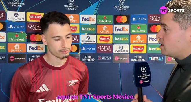 阿森纳主场0-0战平葡萄牙体育,两回合总比分1-0晋级欧冠半决赛,马丁内利赛后接受了TNT体育墨西哥频道的采访。