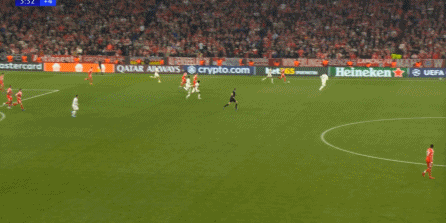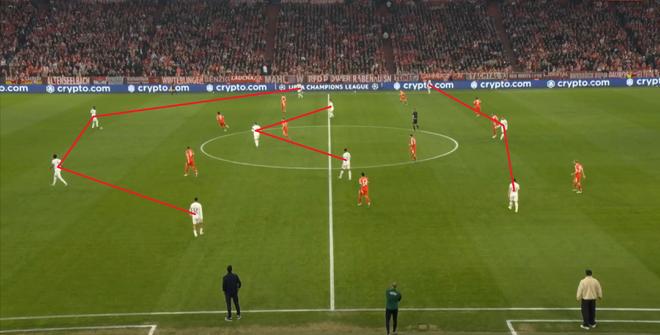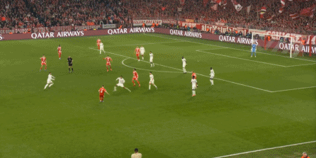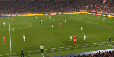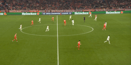 所以,两支球队都能打到对方的问题,但彼此的进攻效率都不算很高,拜仁受限于自己要面对的密集防守,难得的一次转换还打成了这样: