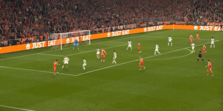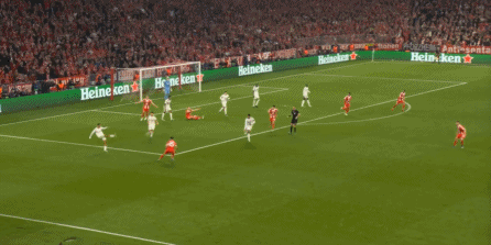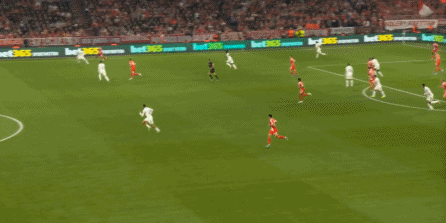 这个时候,卡马文加的红牌就成为了最后一块倒下的多米诺骨牌,因为他一倒,中后场的结构被彻底破坏,就在大家并不知道该继续打五后卫,还是重新打回四后卫的时候,路易斯-迪亚斯抓住居莱尔和贝林厄姆弹不出去的空隙,打进了关键一球:
