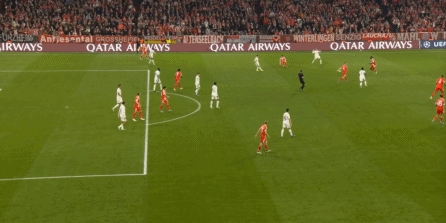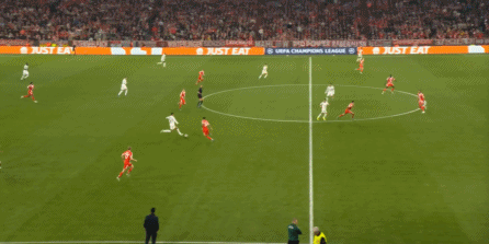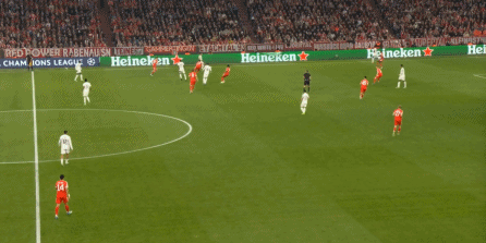 这样一来,拜仁的进攻就失去了右侧这个方向的支撑,加上面对相对低位的皇马和擅长移动的后卫线,中路的凯恩等人着实是没有什么好办法。