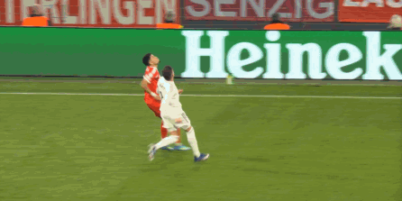 所以从这个角度来说,此役直接摆出米利唐和吕迪格的中卫组合,可以在一定程度上解决身侧空间的覆盖问题,但两人已经没有前几年那么靠谱了,尤其是米利唐,特点仍在,但状态需要打一个问号,所以在比赛第14分钟,拜仁在进球之后的第一次威胁进攻,就源自路易斯-迪亚斯对他的抢断: