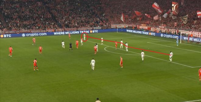 但这一手的效果也不大,皇马甚至还能通过拜仁的失误来打出攻门机会: