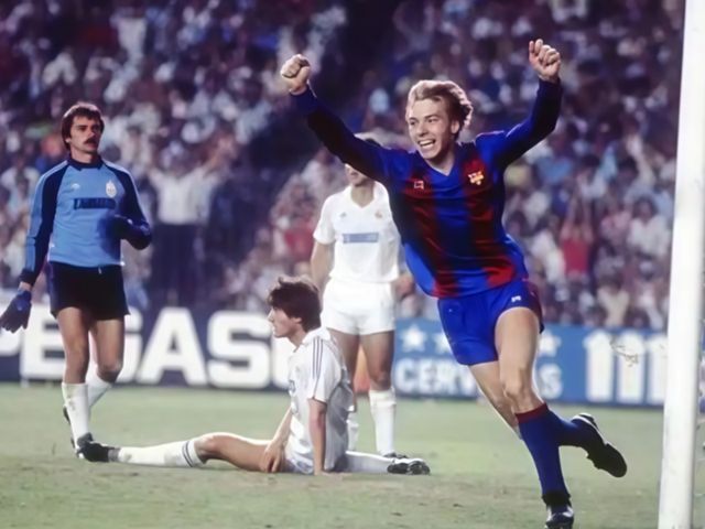 1984—85赛季的西甲首轮,就是万众瞩目的西班牙国家德比,巴萨客场挑战皇家马德里。全世界的目光都聚焦在这位新10号身上。就是这样一场比赛,他进球了!正是他的关键进球,帮助巴萨在伯纳乌战胜死敌。